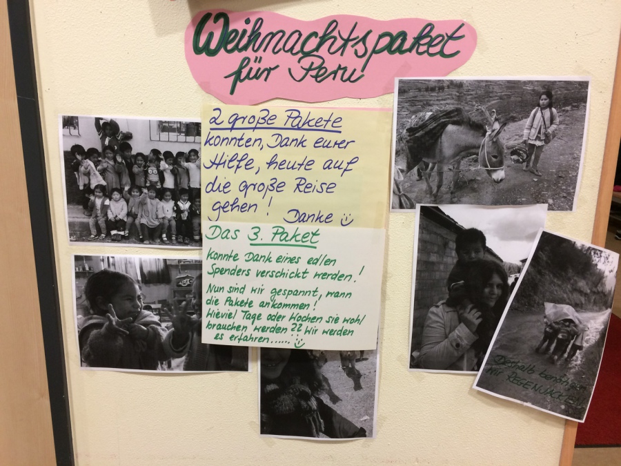 Wir haben eine Box im KiK aufgestellt. Wenn ihr helfen möchtet, könnt ihr bis zum Mittwoch, 7. Dezember 2016, Sachen hineinlegen. Am Donnerstag geht die Kiste auf die Reise nach Peru.